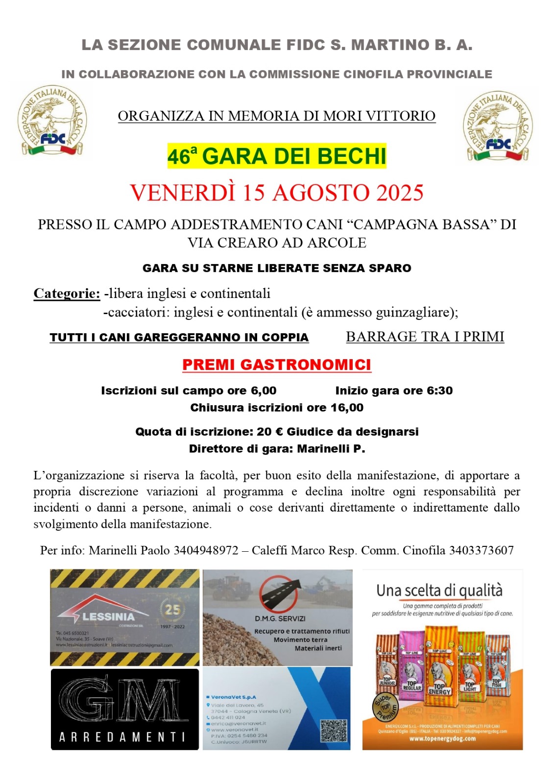 | 15.08.2025 | FIDC San Martino Buon Albergo | Gara su starne liberate senza sparo |