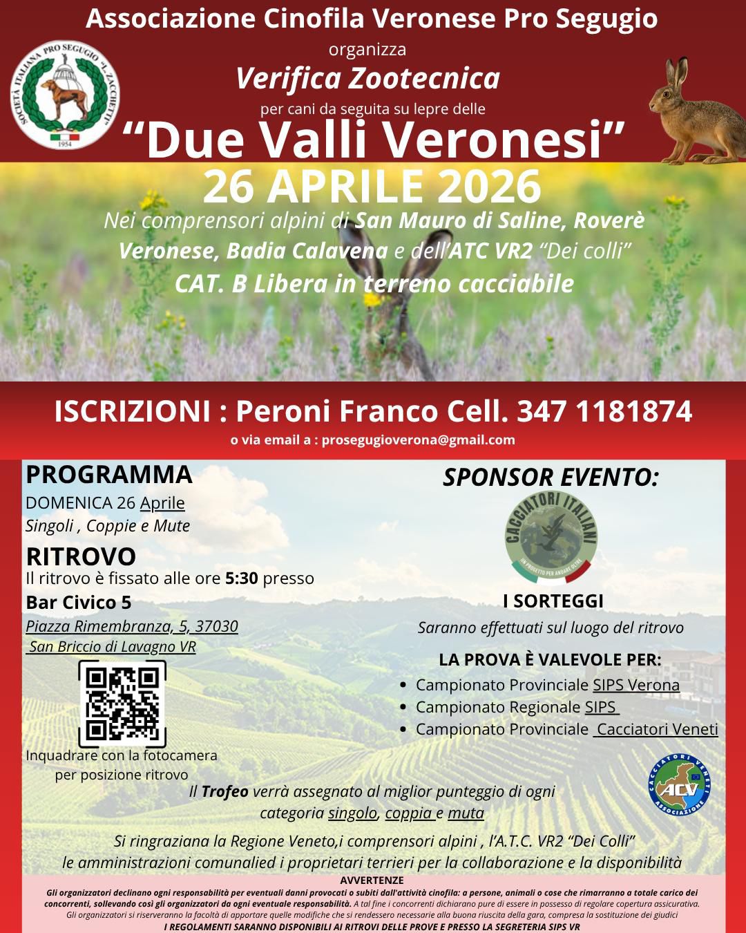 Il Circolo Cinofilo Scaligero di Verona in collaborazione con gli A.T.C. di Verona 2 dei Colli, 3 Mincio, 4 Adige, 5 Tartaro, 6 Valli Grandi organizzano